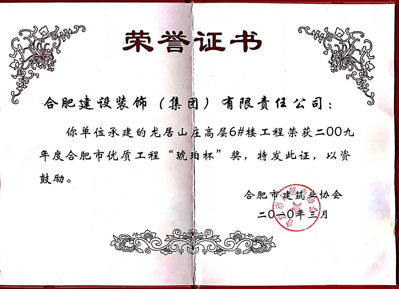 >2009年優秀工程琥珀杯獎--龍居山莊高層6#