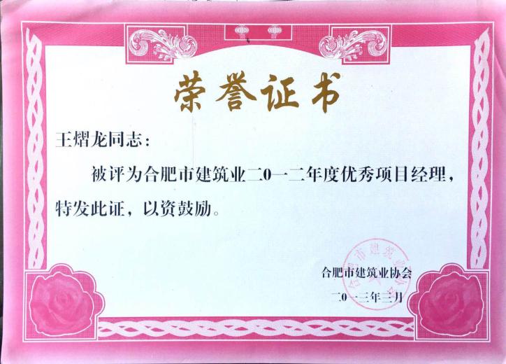 >2012年度優(yōu)秀項(xiàng)目經(jīng)理王熠龍