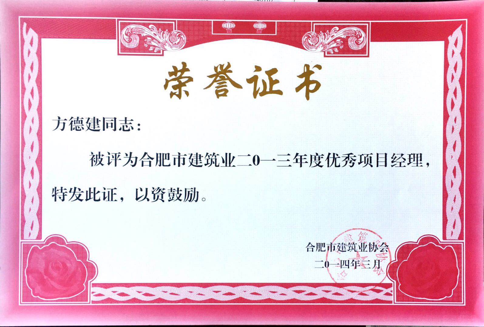 2013年度優秀項目經理方德建