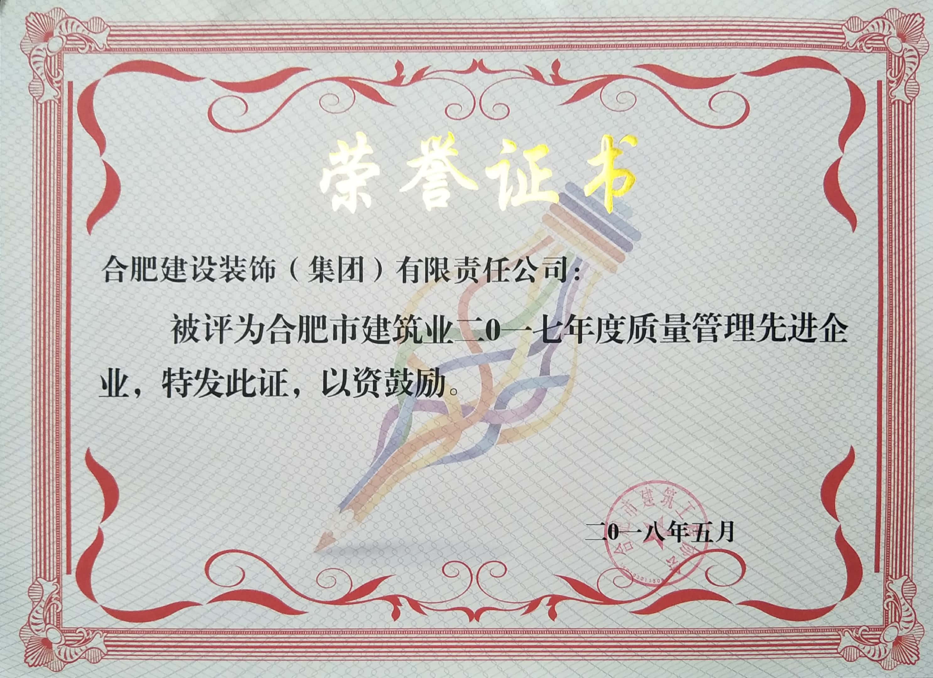 >2017年度質(zhì)量管理先進企業(yè)