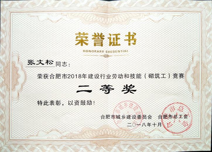 >2018年建設(shè)行業(yè)勞動與技能砌筑工--二等獎