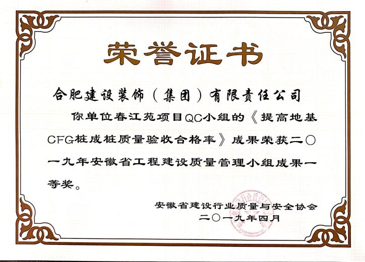 >2019年安徽省工程建設(shè)質(zhì)量管理小組成果一等獎