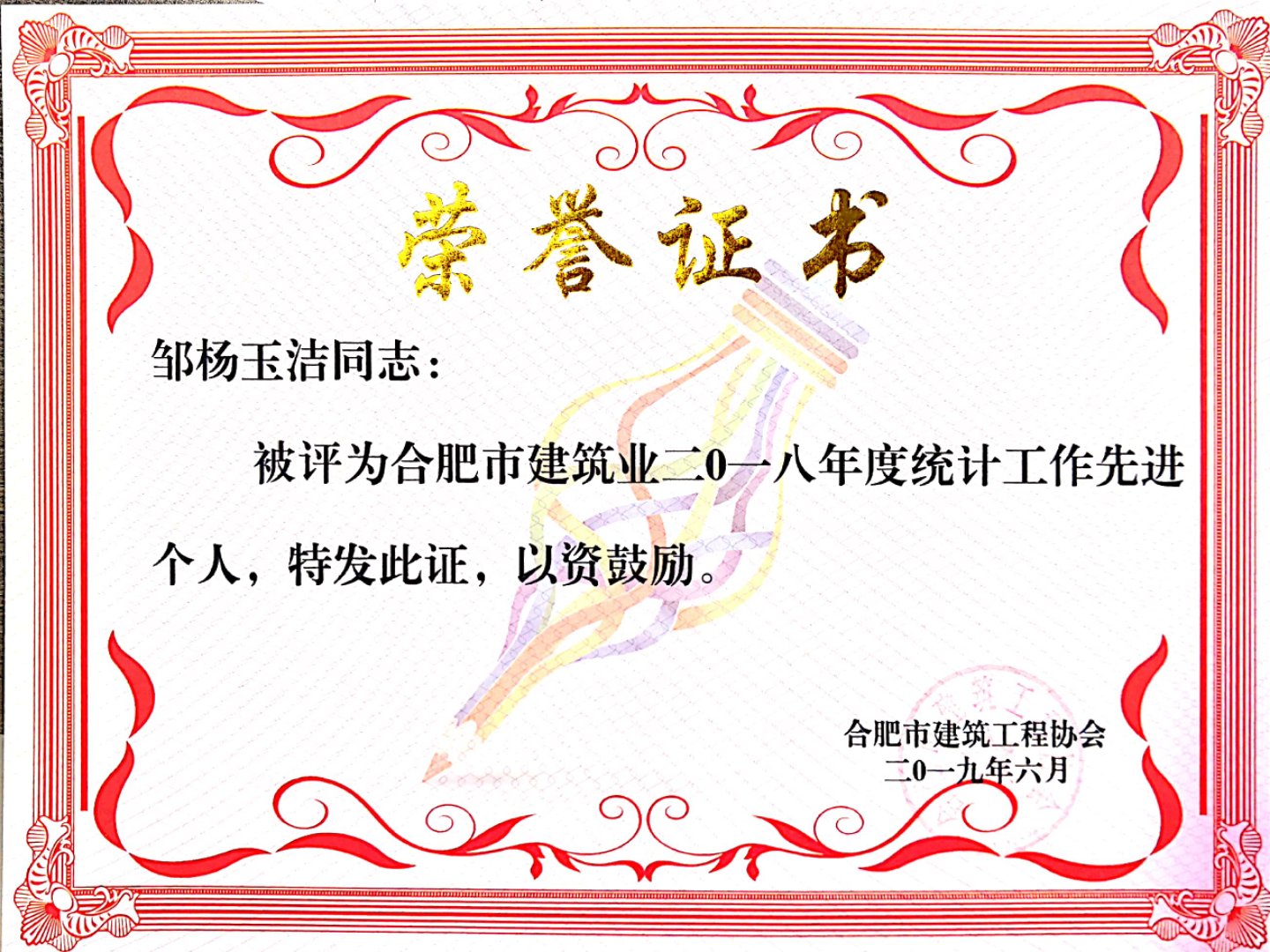 >2018年鄒楊玉潔統(tǒng)計(jì)先進(jìn)個(gè)人