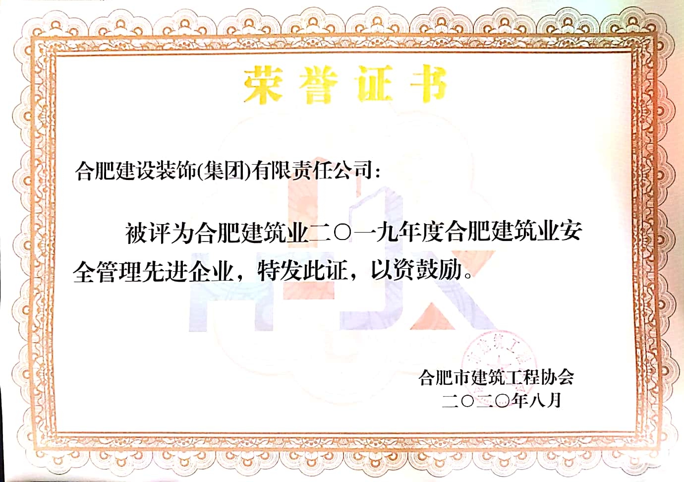 >2019年度合肥建筑業安全管理先進企業