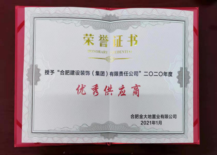 >合肥金大地置業有限公司2020年度“優秀供應商”證書