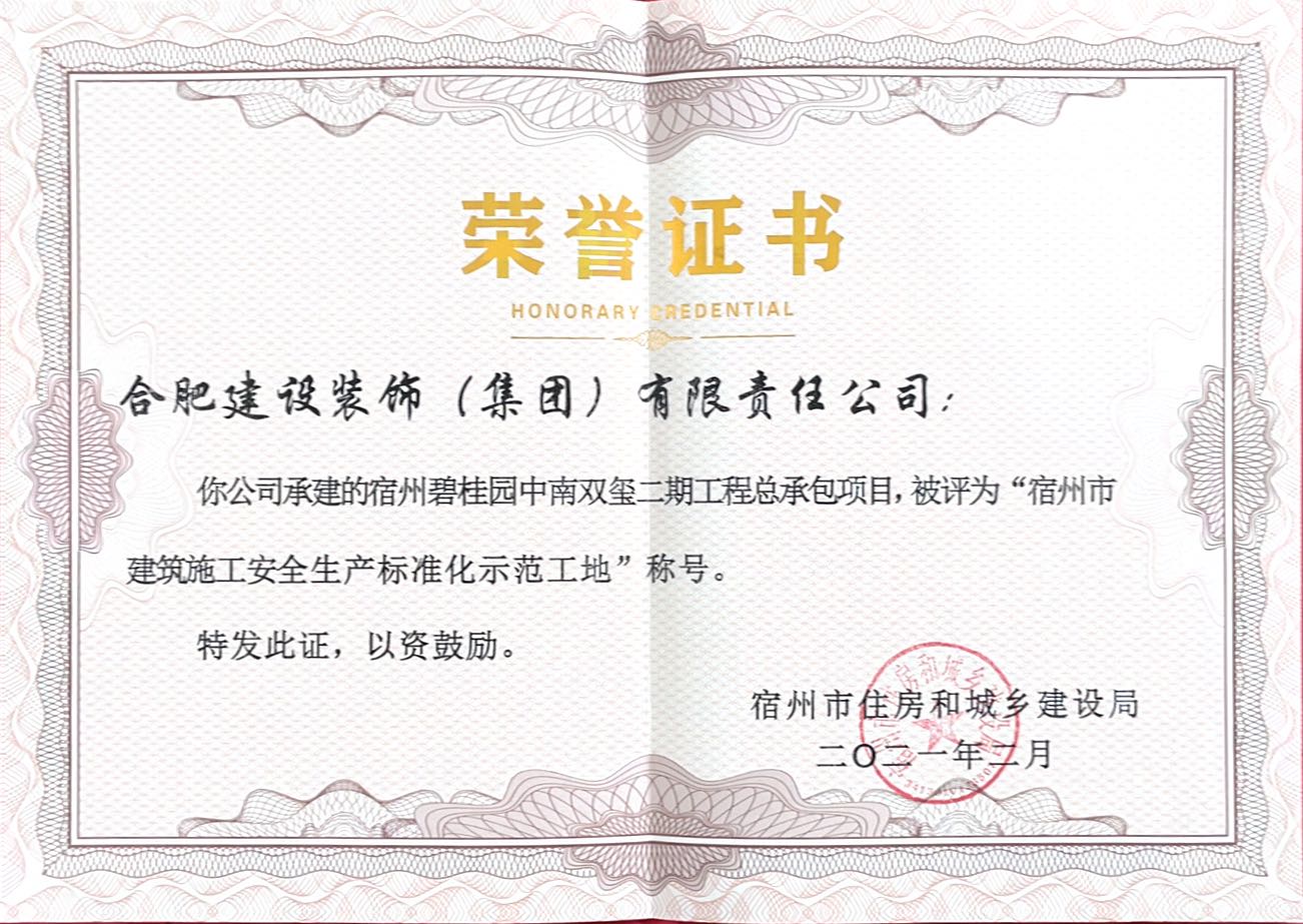 >宿州碧桂園中南雙璽二期總承包工程--宿州市建筑安全生產(chǎn)標(biāo)準(zhǔn)化示范工地