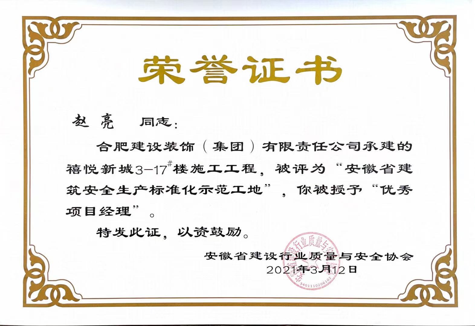 >禧悅新城3-17#樓施工工程——趙亮——優(yōu)秀項(xiàng)目經(jīng)理
