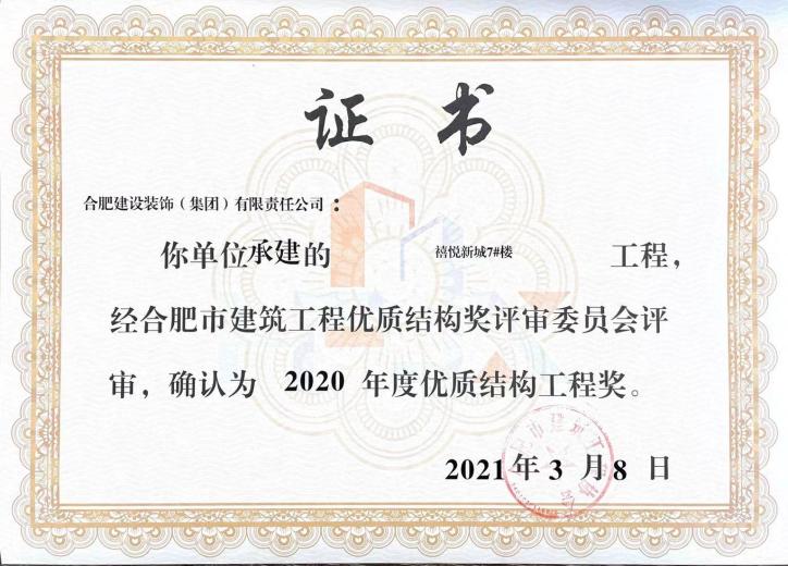 >禧悅新城7#樓——2020年度合肥市建筑工程優質結構獎