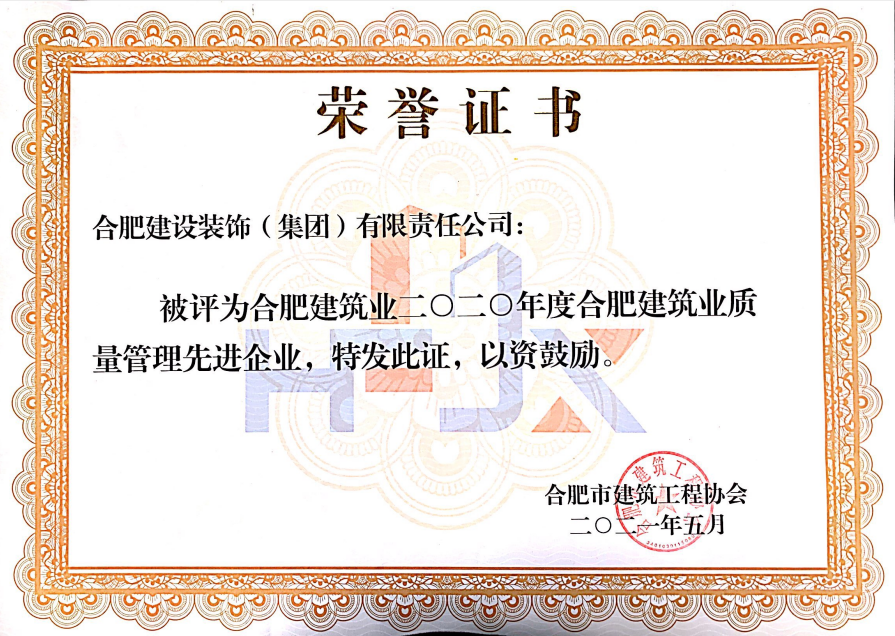 >2020年合肥建筑業質量管理先進企業