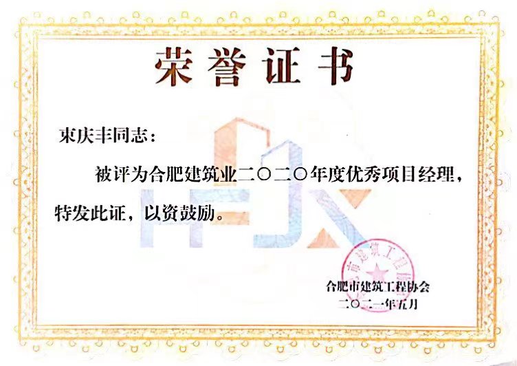>2020年合肥建筑業企業優秀項目經理--束慶豐