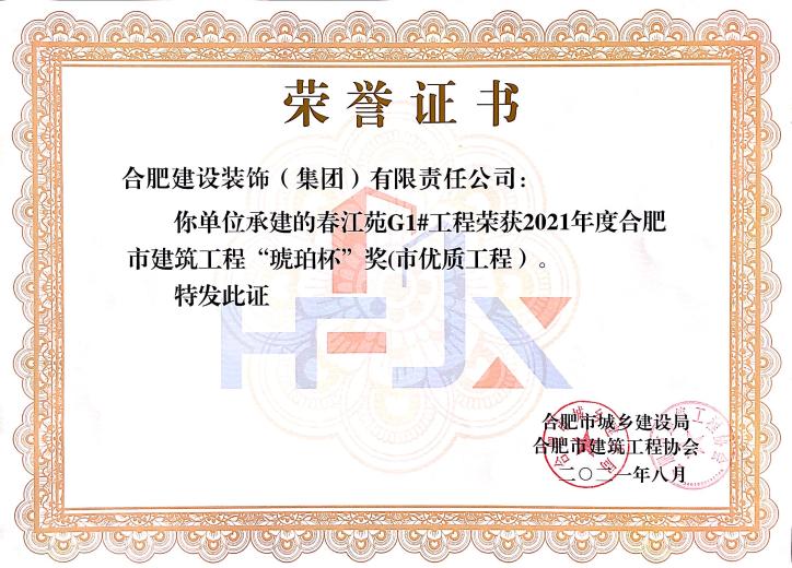 >春江苑G1#--2021年度合肥市建筑工程“琥珀杯”獎(市優質工程)