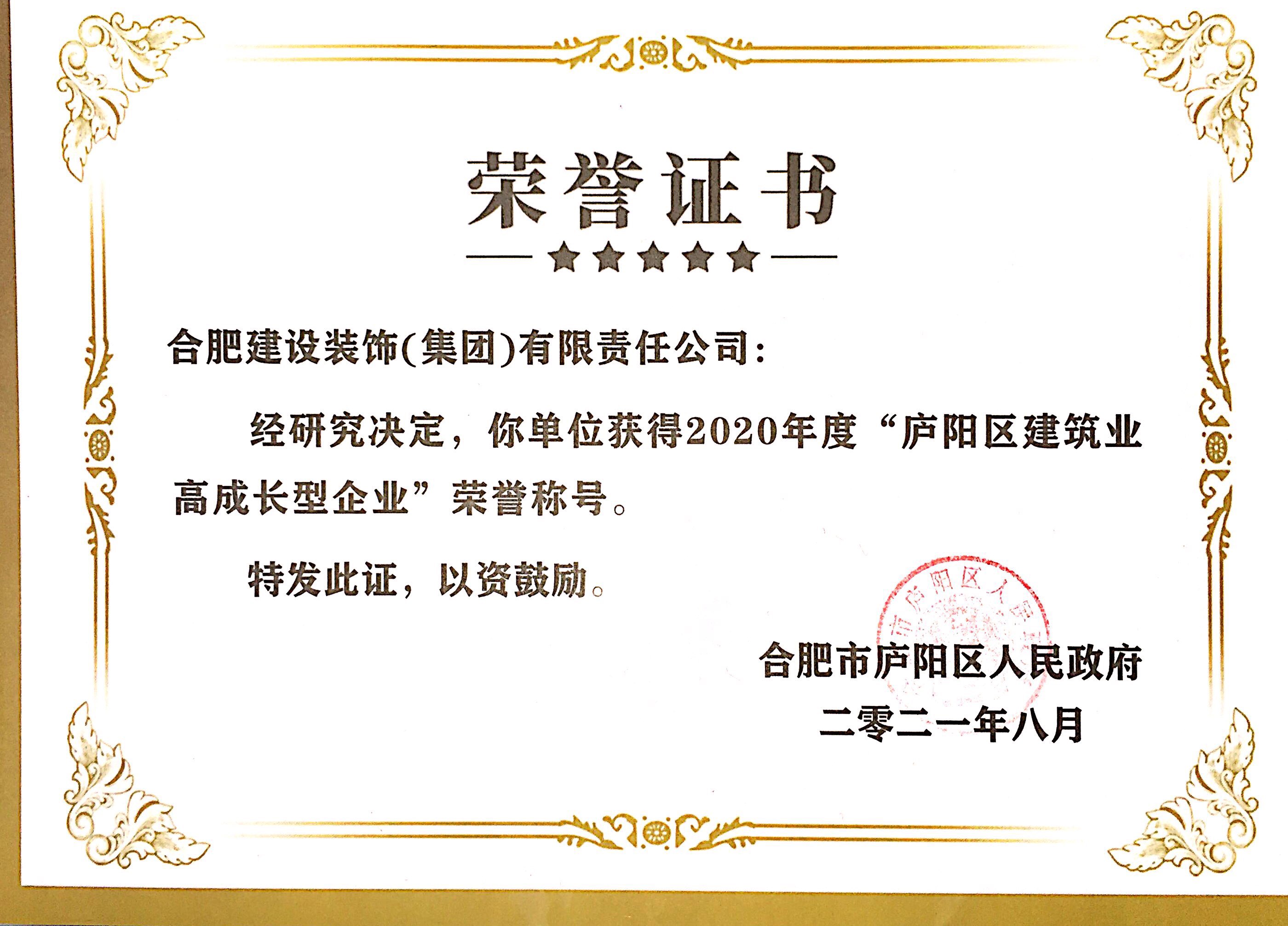 2020年度廬陽區建筑業高成長型企業